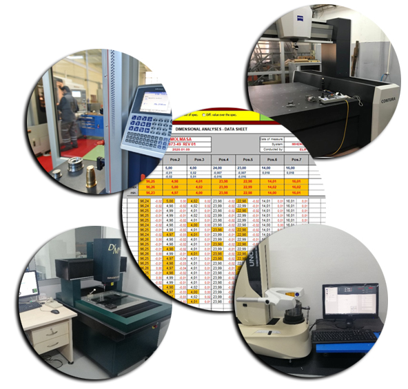 Üretilen her bir parça kalite/ölçüm laboratuarında hassas ölçüm cihazları ile teknik resimde belirtilen tolerans aralığında ölçülür ve raporlanır.